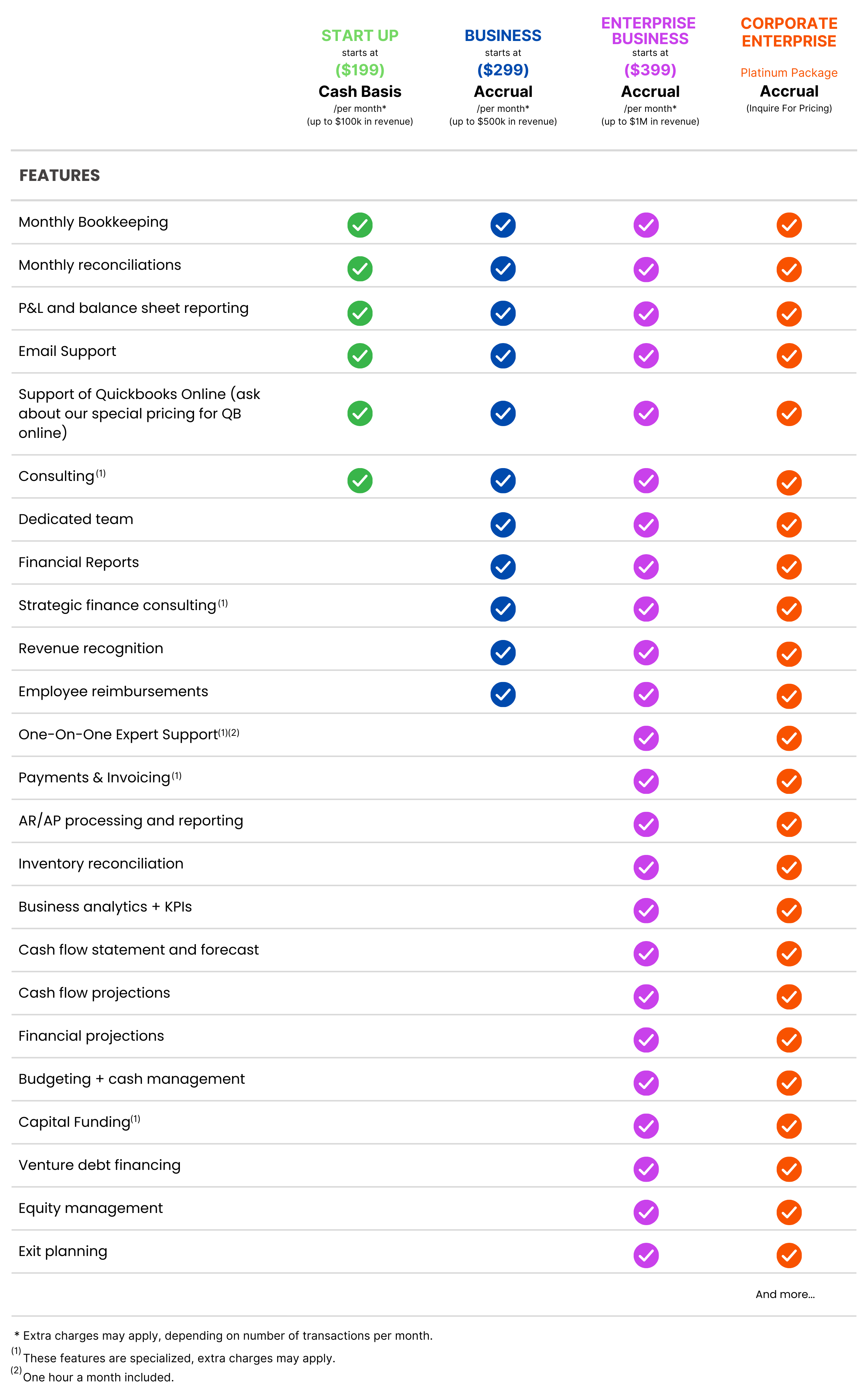 Includes Start Up Features, plus: